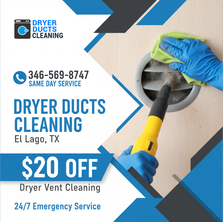 Dryer duct cleaning is essential for maintaining safety, efficiency and strong airflow inside your home. El Lago Dryer Ducts Cleaning TX delivers complete cleaning solutions using advanced tools to remove lint, clogs and debris. Our goal is to improve dryer performance, extend appliance life and reduce fire hazards.